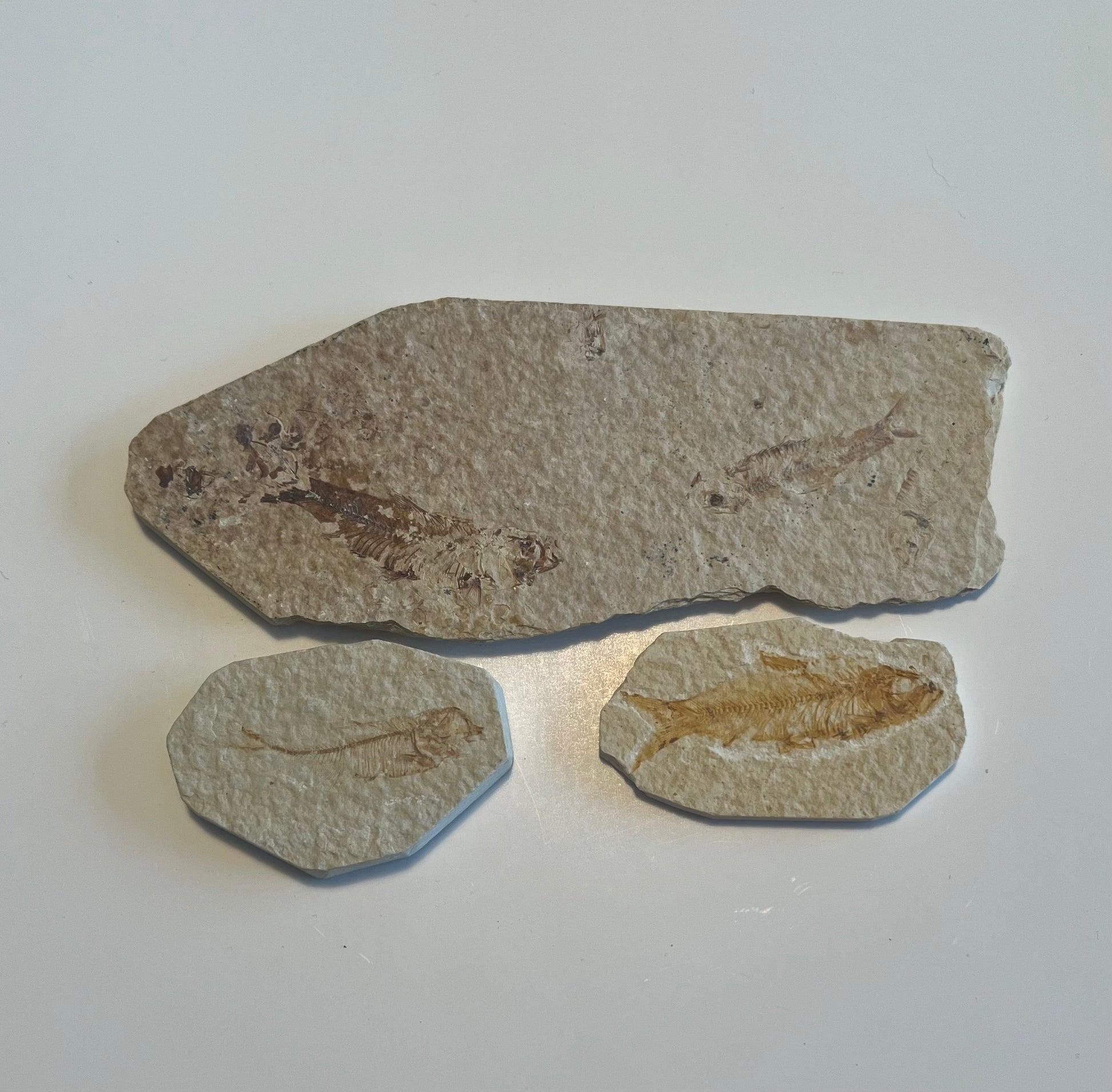 These 3 unique fish fossils come from the Green River Formation of Wyoming. The formation is extremely well-known as it is home to a multitude of fossilized fish, reptiles, invertebrates, birds and even mammals. These pieces would make an excellent addition to any collection.